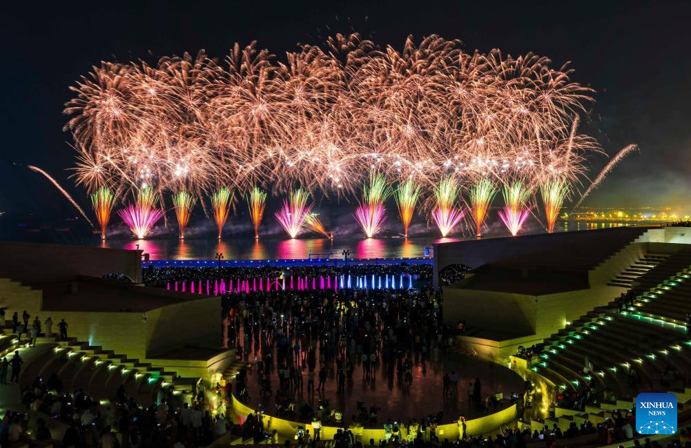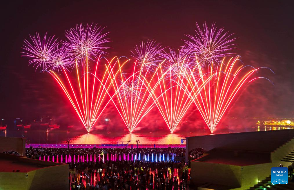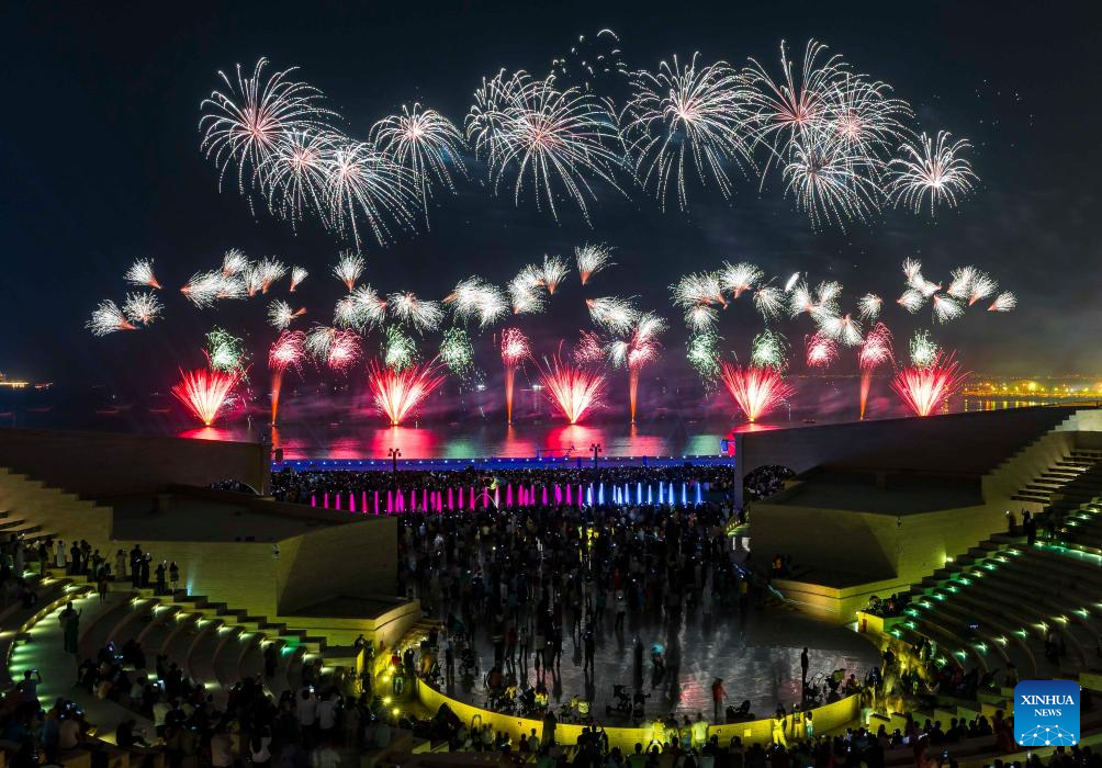 Fireworks light up the sky during the Eid al-Adha celebrations in Doha, Qatar, June 6, 2025. (Photo by Nikku/Xinhua)