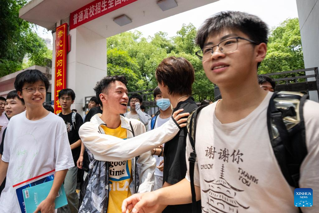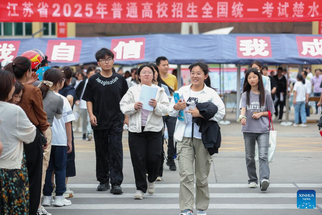 Students walk out a national college entrance examination site in Xinghua City, east China's Jiangsu Province, June 9, 2025. China's national college entrance exam, also known as the gaokao, began on June 7 this year. The exam in some regions has ended on Monday. (Photo by Zhou Shegen/Xinhua)