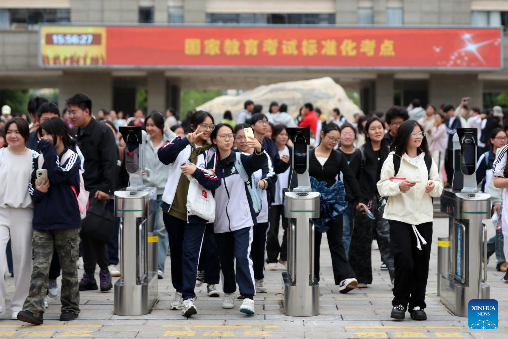 Students walk out a national college entrance examination site in Kunming City, southwest China's Yunnan Province, June 9, 2025. China's national college entrance exam, also known as the gaokao, began on June 7 this year. The exam in some regions has ended on Monday. (Photo by Hao Yaxin/Xinhua)