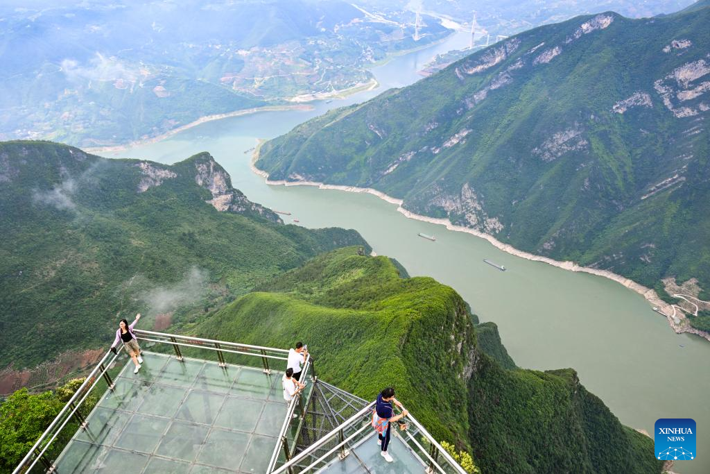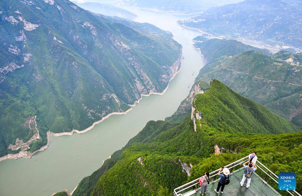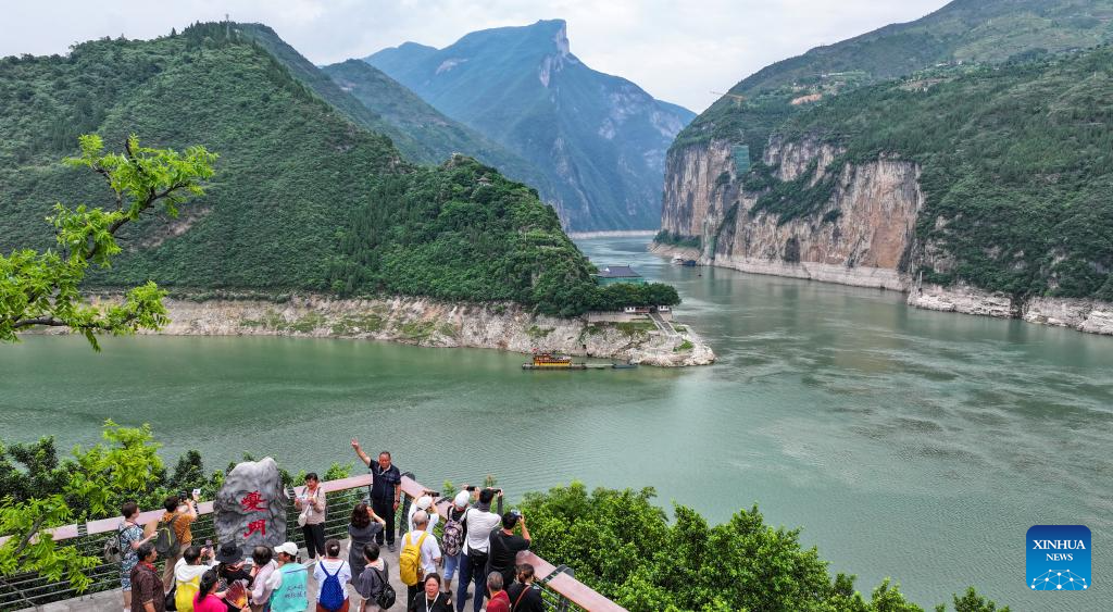 People visit Qutang Gorge, one of the Three Gorges on the Yangtze River, in Fengjie County, southwest China's Chongqing Municipality, June 9, 2025. (Xinhua/Wang Quanchao)