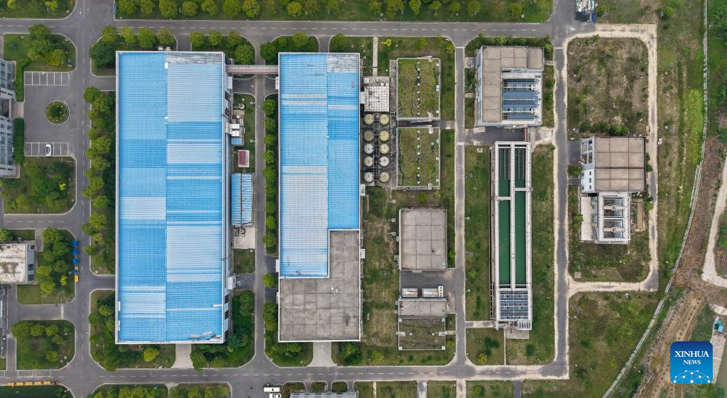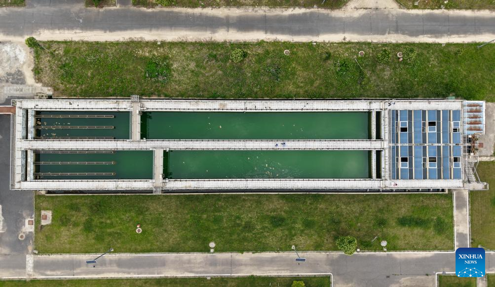 A drone photo shows a flocculation and sedimentation tank at Jiangsu Fenghai New Energy Seawater Desalination Development Co., Ltd. in Yancheng, east China's Jiangsu Province, June 7, 2025.