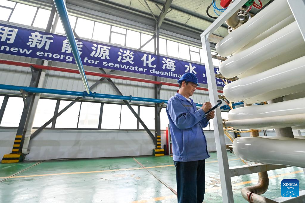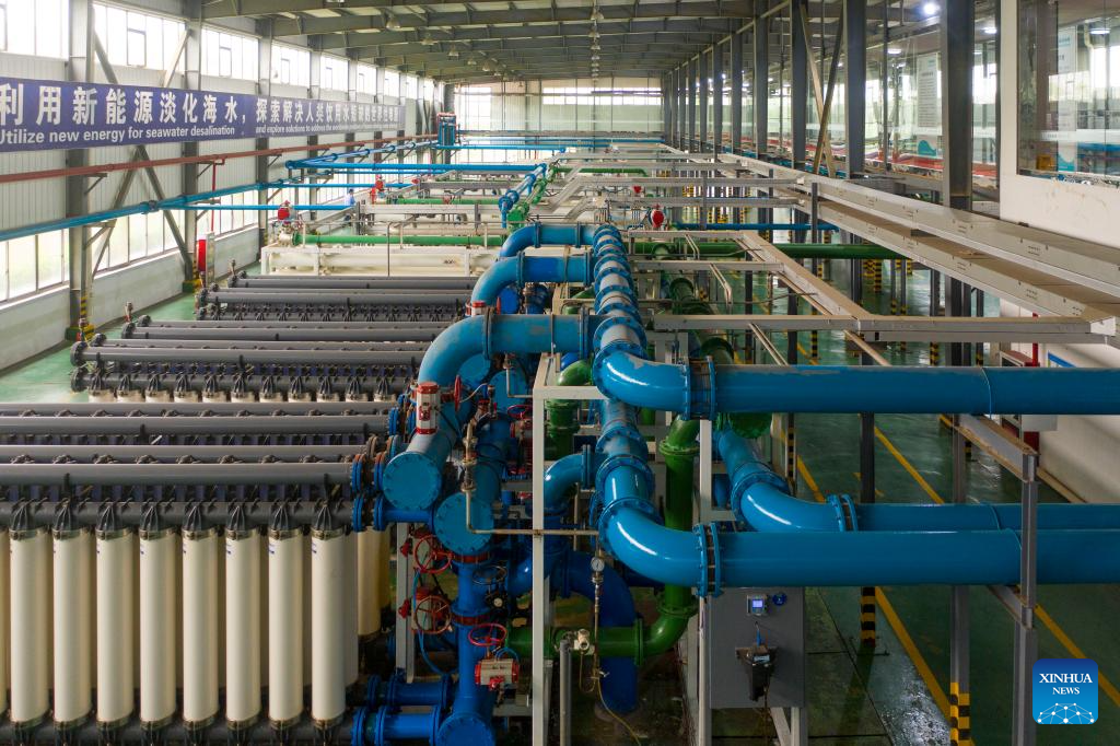 A model seawater desalination solution provider, Jiangsu Fenghai New Energy Seawater Desalination Development Co., Ltd. is committed to the industrialized development of new energy powered desalination technology to convert seawater into freshwater and offers integrated seawater desalination and electricity solutions to islands and areas facing significant water and power shortage. (Xinhua/Yang Chenguang)