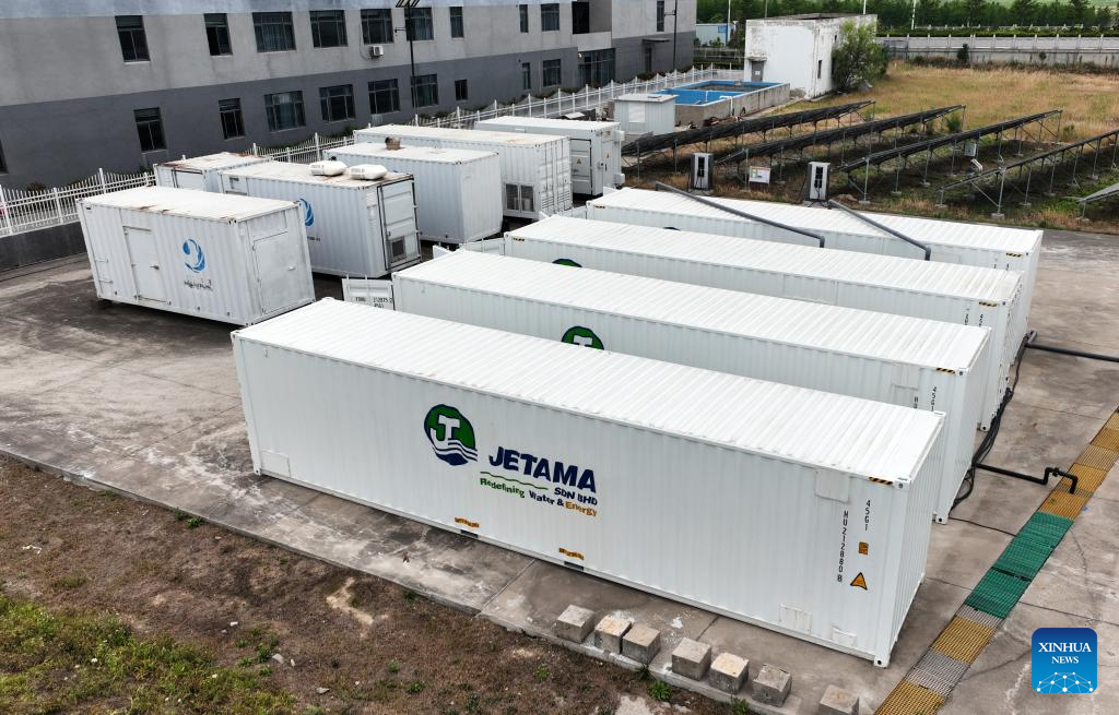 A drone photo shows containerized desalination plants at Jiangsu Fenghai New Energy Seawater Desalination Development Co., Ltd. in Yancheng, east China's Jiangsu Province, June 7, 2025.