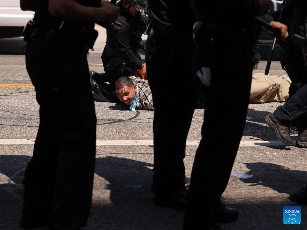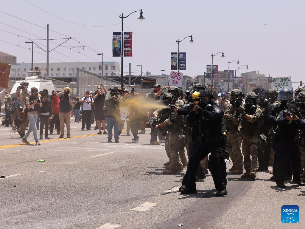 In response, Trump ordered the deployment of 2,000 National Guard members on Saturday. The protests intensified further on Sunday, with growing crowds and heightened confrontations between demonstrators and law enforcement officers. (Xinhua/Gao Shan)