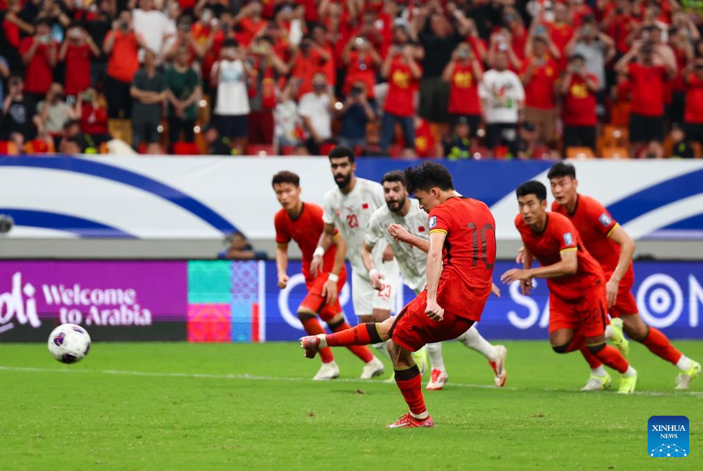 CHONGQING, June 10 (Xinhua) -- 18-year-old young forward Wang Yudong scored a late penalty for China as the home team beat Bahrain 1-0 here on Tuesday to finish its FIFA World Cup 2026 qualifying journey.