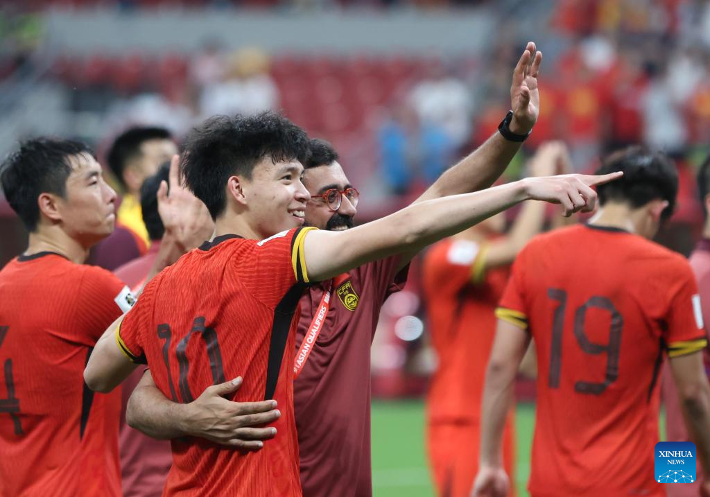 Players of China greet spectators after the 2026 FIFA World Cup Asian Qualifiers Group C match between China and Bahrain in Chongqing, southwest China, June 10, 2025. (Xinhua/Chen Cheng)