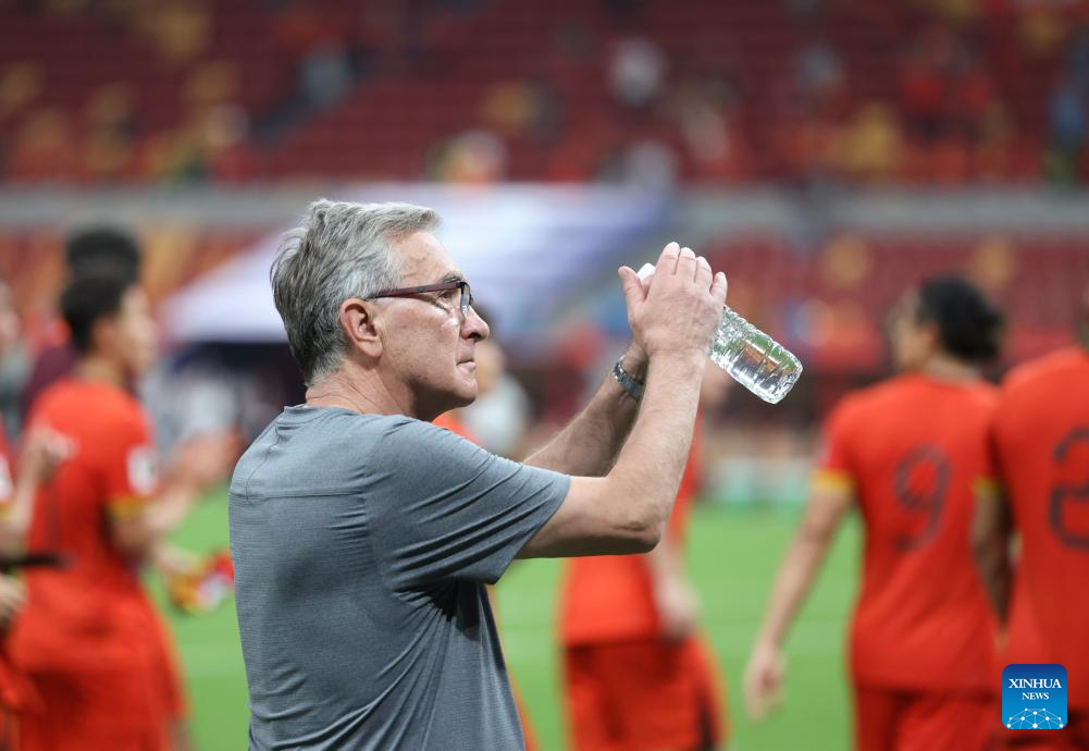 Head coach of China Branko Ivankovic greets spectators after the 2026 FIFA World Cup Asian Qualifiers Group C match between China and Bahrain in Chongqing, southwest China, June 10, 2025. (Xinhua/Huang Wei)
