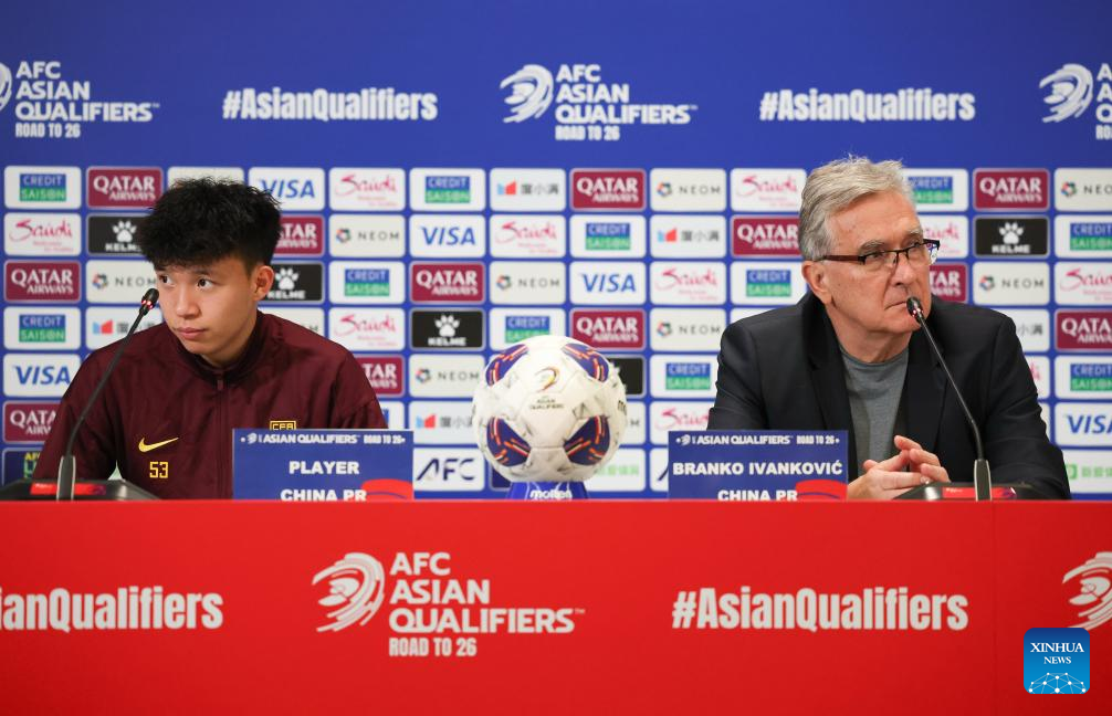 Head coach of China Branko Ivankovic (R) and player Wang Yudong of China attend a press conference after the 2026 FIFA World Cup Asian Qualifiers Group C match between China and Bahrain in Chongqing, southwest China, June 10, 2025. (Xinhua/Hu Xingyu)