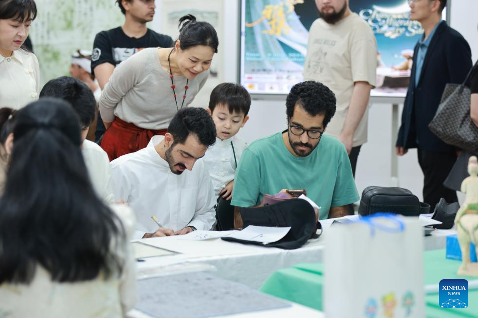 People attend a cultural event at the China Cultural Center in Hawalli Governorate, Kuwait, June 9, 2025. The cultural event has been held here to mark the first UN International Day for Dialogue among Civilizations, which is observed on June 10 annually.