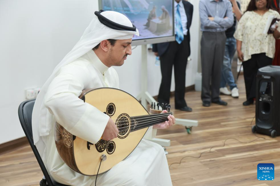 A Kuwaiti musician plays a traditional musical instrument during a cultural event at the China Cultural Center in Hawalli Governorate, Kuwait, June 9, 2025. The cultural event has been held here to mark the first UN International Day for Dialogue among Civilizations, which is observed on June 10 annually.