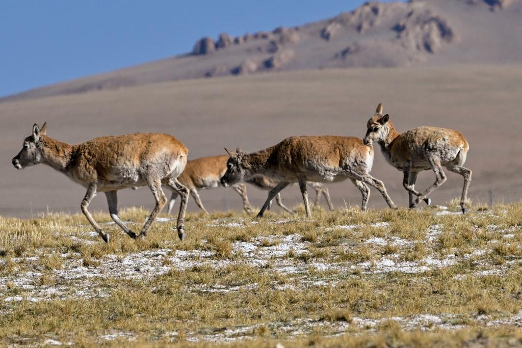 The number of Tibetan antelopes in Xizang has now increased to more than 300,000, and their protection status has been downgraded from "endangered" to "near threatened," according to data from the region's ecology and environment department.