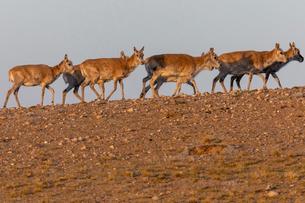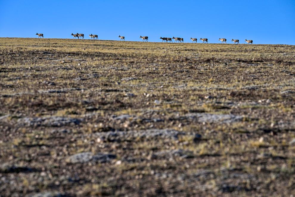 Tibetan antelopes are on migration in Changtang National Nature Reserve in southwest China's Xizang Autonomous Region, June 10, 2025. (Xinhua/Sun Ruibo)
