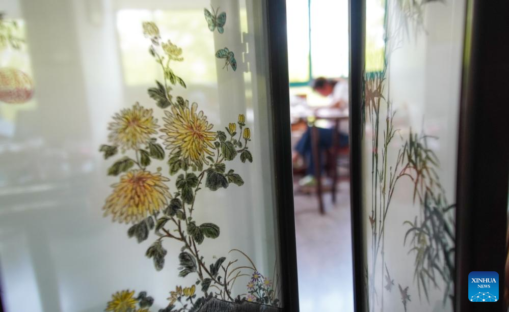 Chen Boyu works on a hair embroidery artwork at the Jiali hair embroidery factory in Dongtai City, Yancheng of east China's Jiangsu Province, June 6, 2025. (Xinhua/Xue Yuge)