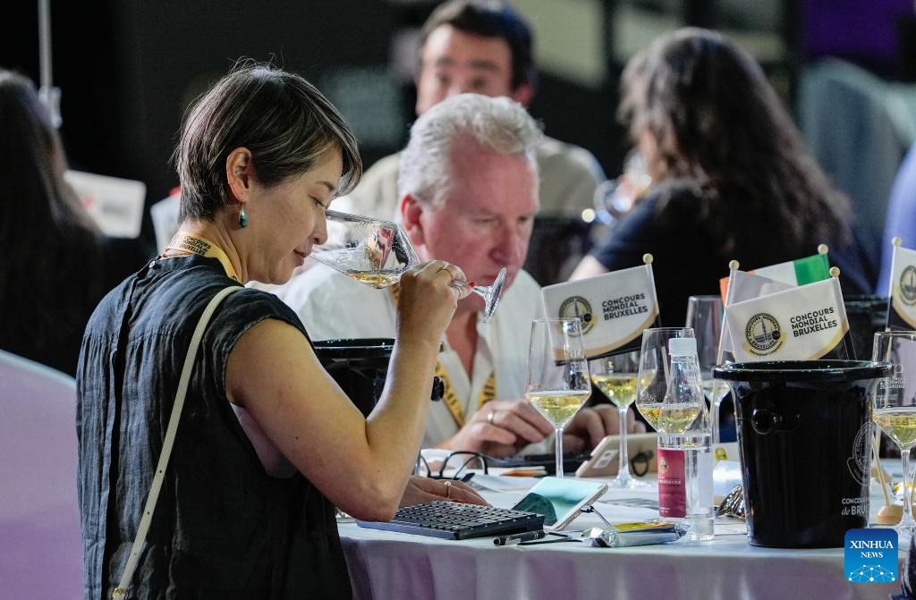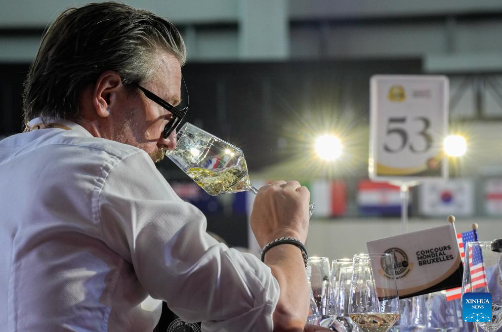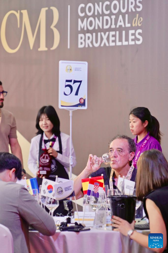 A sommelier samples a glass of wine during the 32nd Concours Mondial de Bruxelles (CMB) in Yinchuan, northwest China's Ningxia Hui Autonomous Region, June 10, 2025. Making its China debut in 2018 in Beijing, the CMB has this year brought together nearly 400 international judges and over 7,000 wine samples, including a record number of entries from China, according to CMB Chairman Baudouin Havaux. (Xinhua/Yang Zhisen)