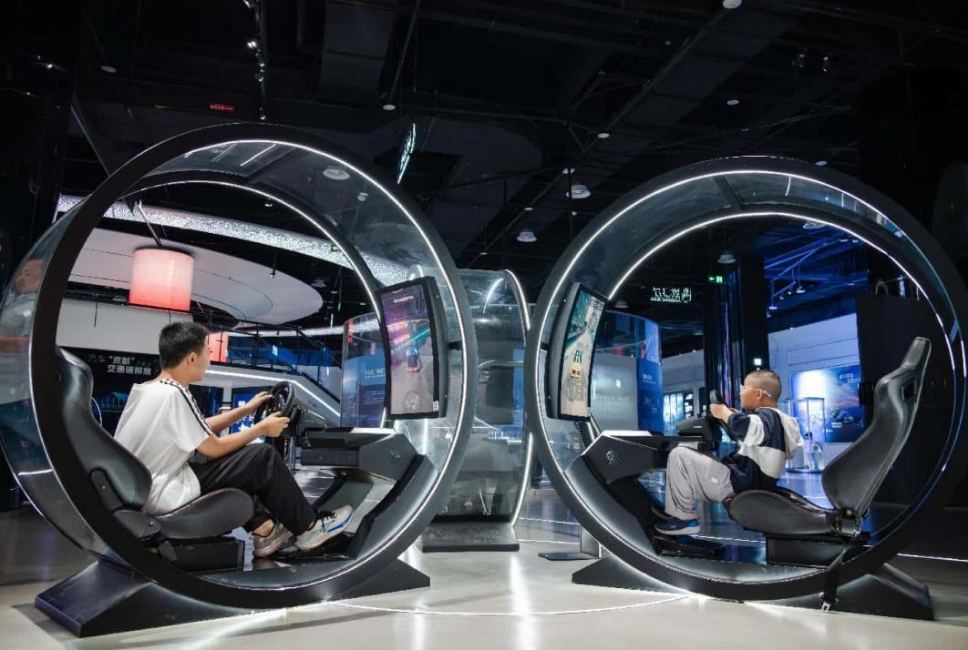 Citizens experience new energy vehicle (NEV) driving simulators at Anhui Science and Technology Museum in Hefei, east China's Anhui province. (Photo by He Yu/People's Daily Online)