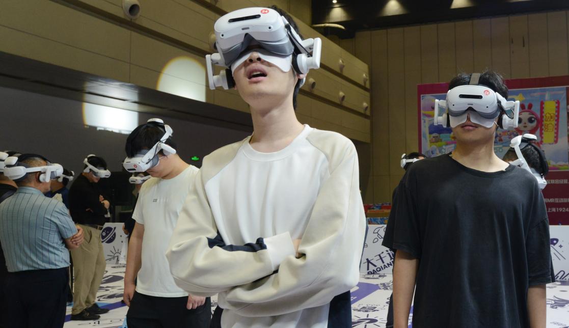 Visitors to the Henan Culture and Tourism Industry Expo try virtual reality headsets, April 18, 2025. (Photo by Zhang Tao/People's Daily Online)