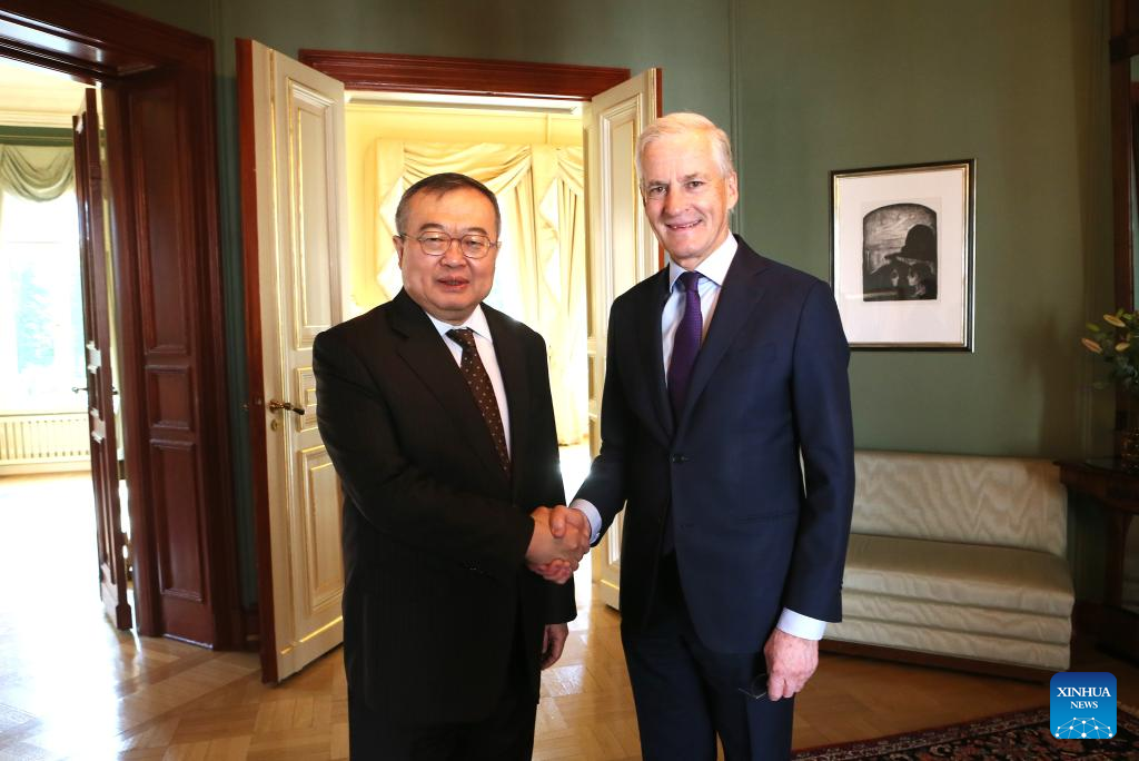 Liu Jianchao, head of the International Department of the Communist Party of China Central Committee, meets with Norwegian Prime Minister and Labour Party leader Jonas Gahr Store in Oslo, Norway, June 12, 2025. A delegation led by Liu Jianchao concluded a three-day visit to Norway on Thursday after participating in the Oslo Forum 2025. (Xinhua/Zhang Yuliang)