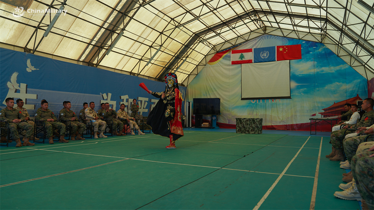 A Chinese peacekeeper puts on a show for the Cambodian counterparts during a recent friendly exchange activity held at the camp of the 23rd Chinese Peacekeeping Force to the United Nations Interim Force in Lebanon (UNIFIL). (eng.chinamil.com.cn/Photo by Zhang Boyu)