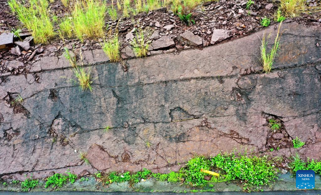 BEIJING, June 12 (Xinhua) -- A research team from China University of Geosciences (Beijing) announced Thursday that it has recorded, for the first time, a combination of mammaliaform and dinosaur tracks in Cretaceous strata in Huaiji County, Zhaoqing City of south China's Guangdong Province.