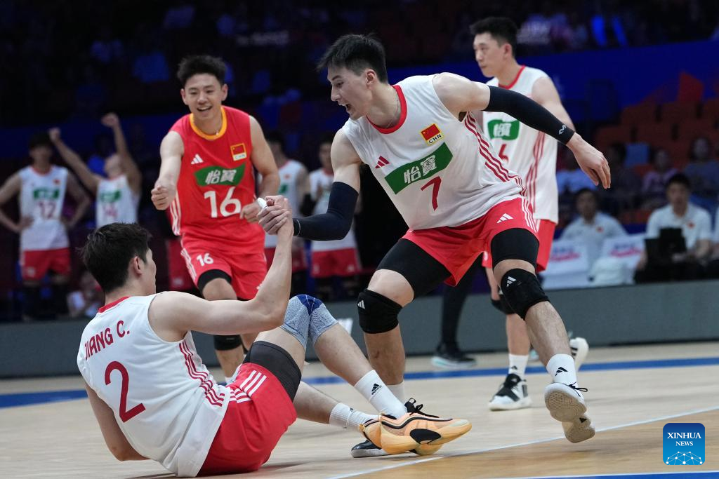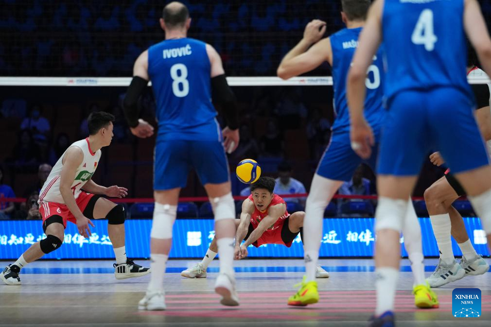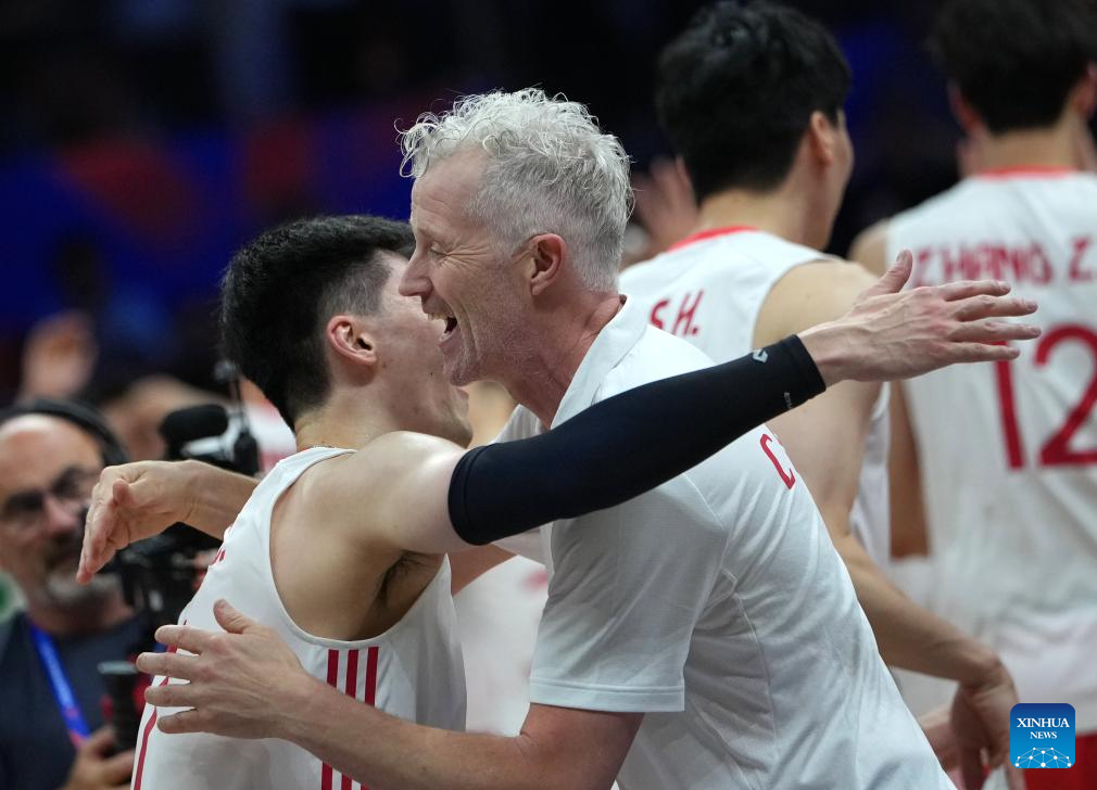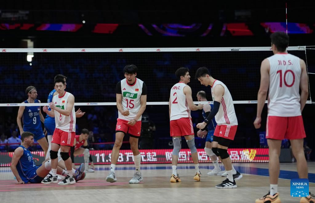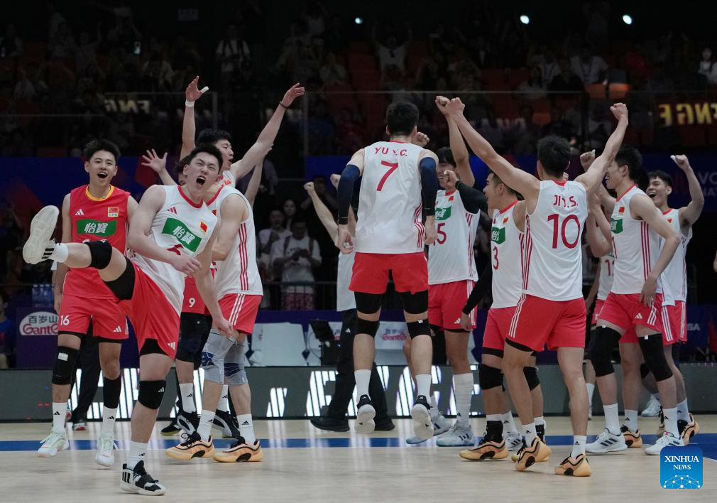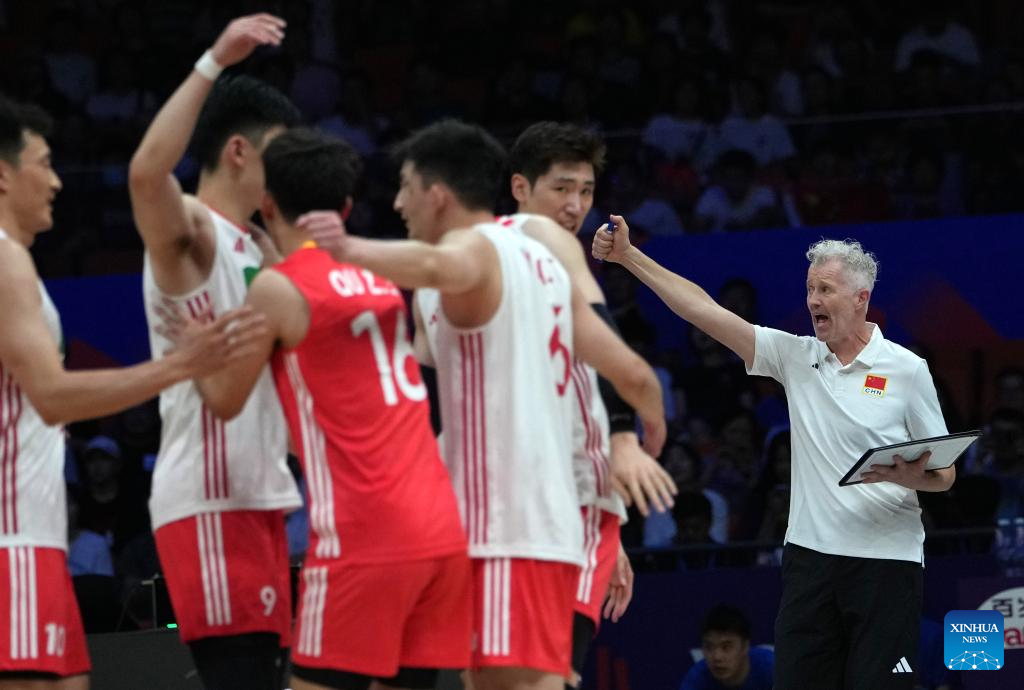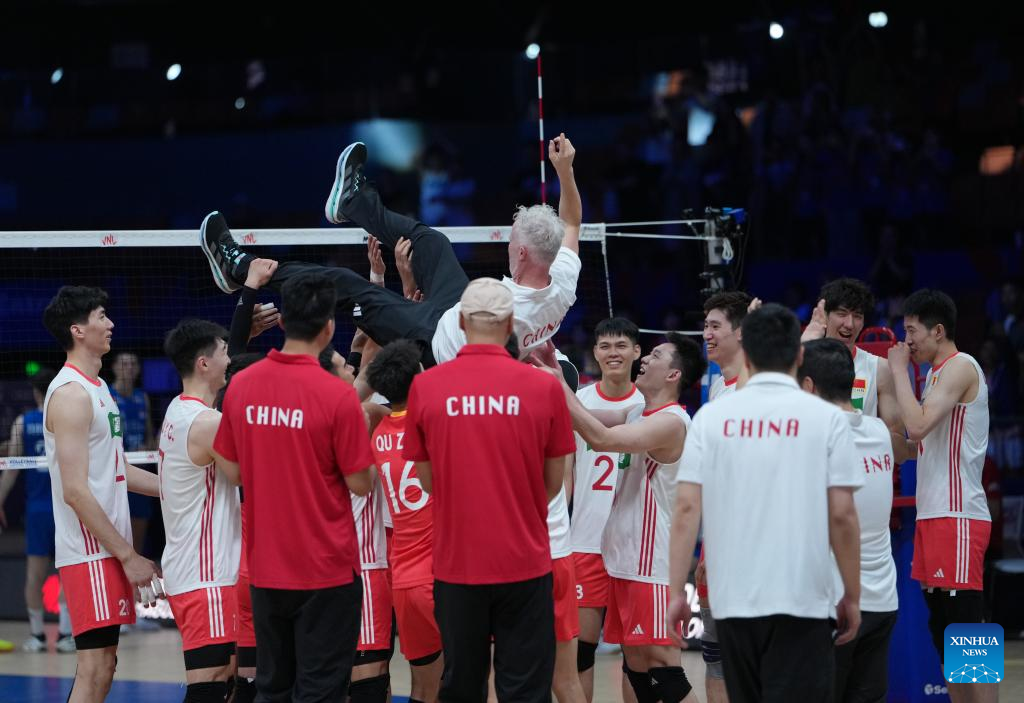 XI'AN, June 12 (Xinhua) -- World 24th-ranked China celebrated its head coach Vital Heynen's 56th birthday by breaking the curse to defeat Serbia in straight sets at the Volleyball Nations League (VNL) Xi'an leg on Thursday.