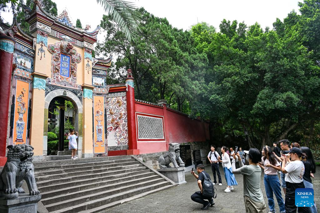 Tourists visit the ancient town of Baidi in Fengjie County, southwest China's Chongqing Municipality, June 9, 2025. In recent years, Wushan, Fengjie, and other areas in the Three Gorges Reservoir region in Chongqing have adhered to the principle of green development. While consolidating the ecological strength in the upper reaches of the Yangtze River, local authorities have fully leveraged the unique terrain, magnificent landscapes, and rich historical and cultural heritage to promote the development of cultural tourism, effectively boosting local economic and social development. (Xinhua/Wang Quanchao)