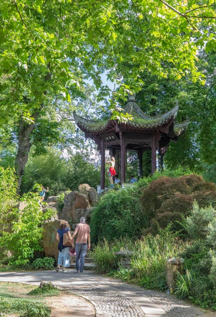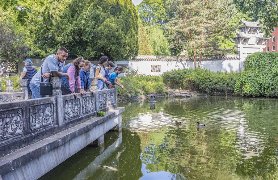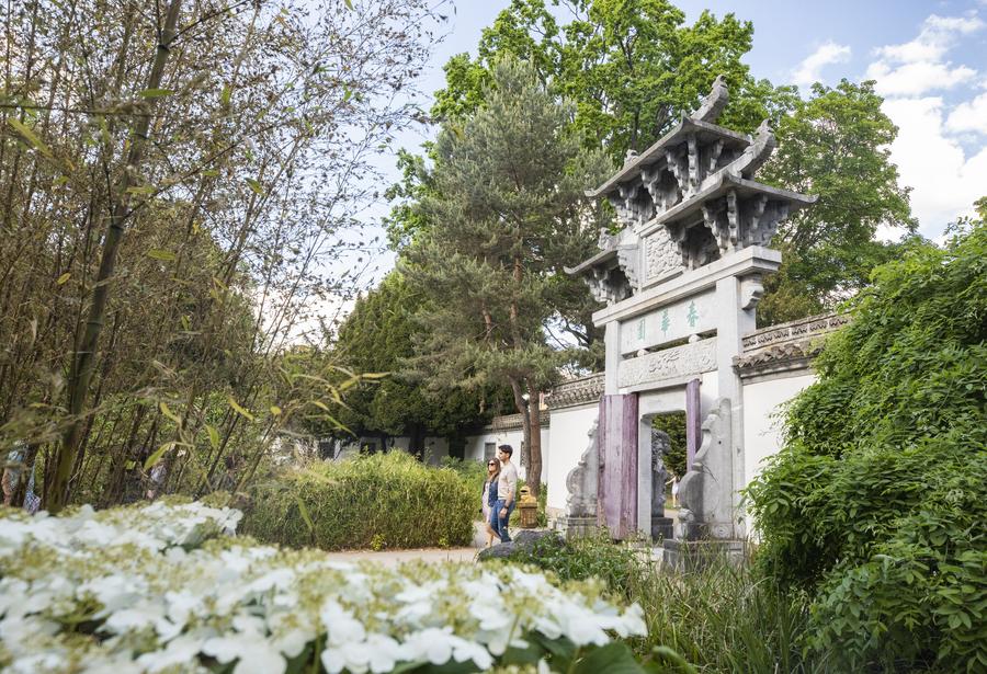 Tourists visit Chunhua Garden in Frankfurt, Germany, on May 11, 2025. (Xinhua/Zhang Fan)