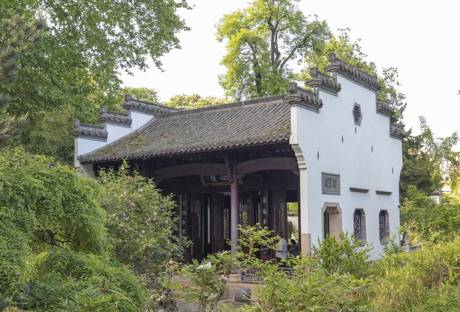 BEIJING, June 14 (Xinhua) -- In 1988, Chunhua Garden, a classical Hui-style garden, was designed and built in Frankfurt of Germany. It was designed and planned by Cheng Jiyue, an expert on Hui-style architecture of China, and his team members. The style of the garden was based on traditional Hui-style architectures such as the Tan'gan Garden and other traditional villages in China's Huangshan City.