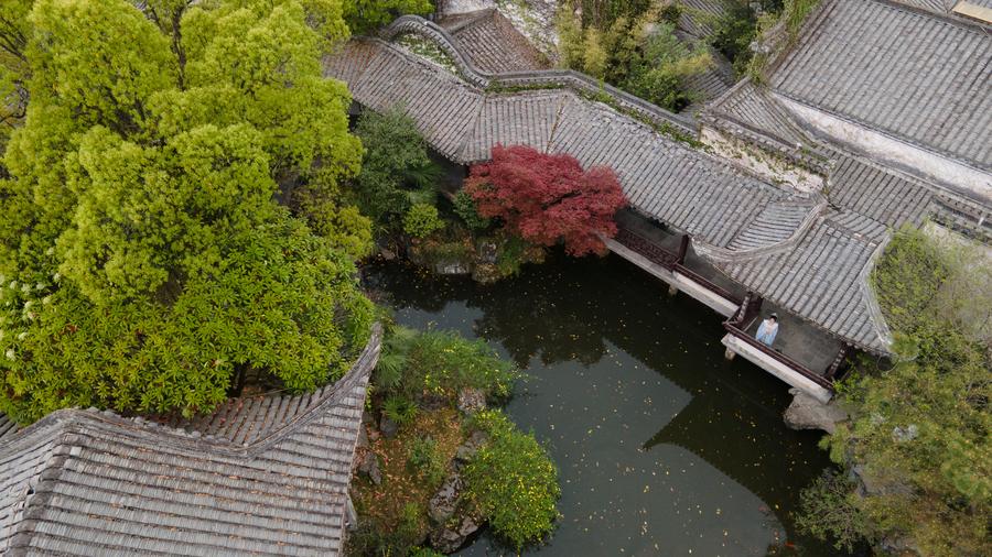 An aerial drone photo taken on April 10, 2025 shows a view of a classical Hui-style garden in Yixian County, Huangshan City, east China's Anhui Province. (Xinhua/Zhang Duan)