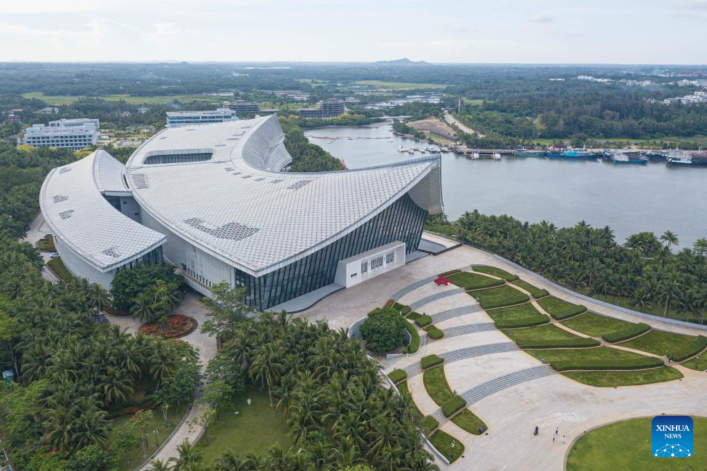 An aerial drone photo taken on June 10, 2025 shows the China (Hainan) Museum of the South China Sea in Qionghai, south China's Hainan Province. A great number of exhibits relevant to the Maritime Silk Road are showcased at the China (Hainan) Museum of the South China Sea, providing valuable insights into the prosperity of the Maritime Silk Road in ancient China and the exchanges between Chinese and foreign civilizations. (Xinhua/Pu Xiaoxu)