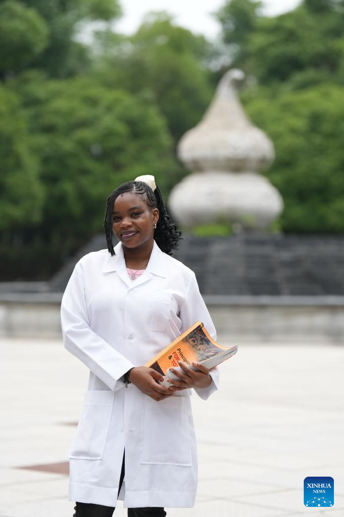 Ekpene Mabel Solomon poses for a photo at Changsha Medical University in Changsha, central China's Hunan Province, June 10, 2025. (Xinhua/Xue Yuge)