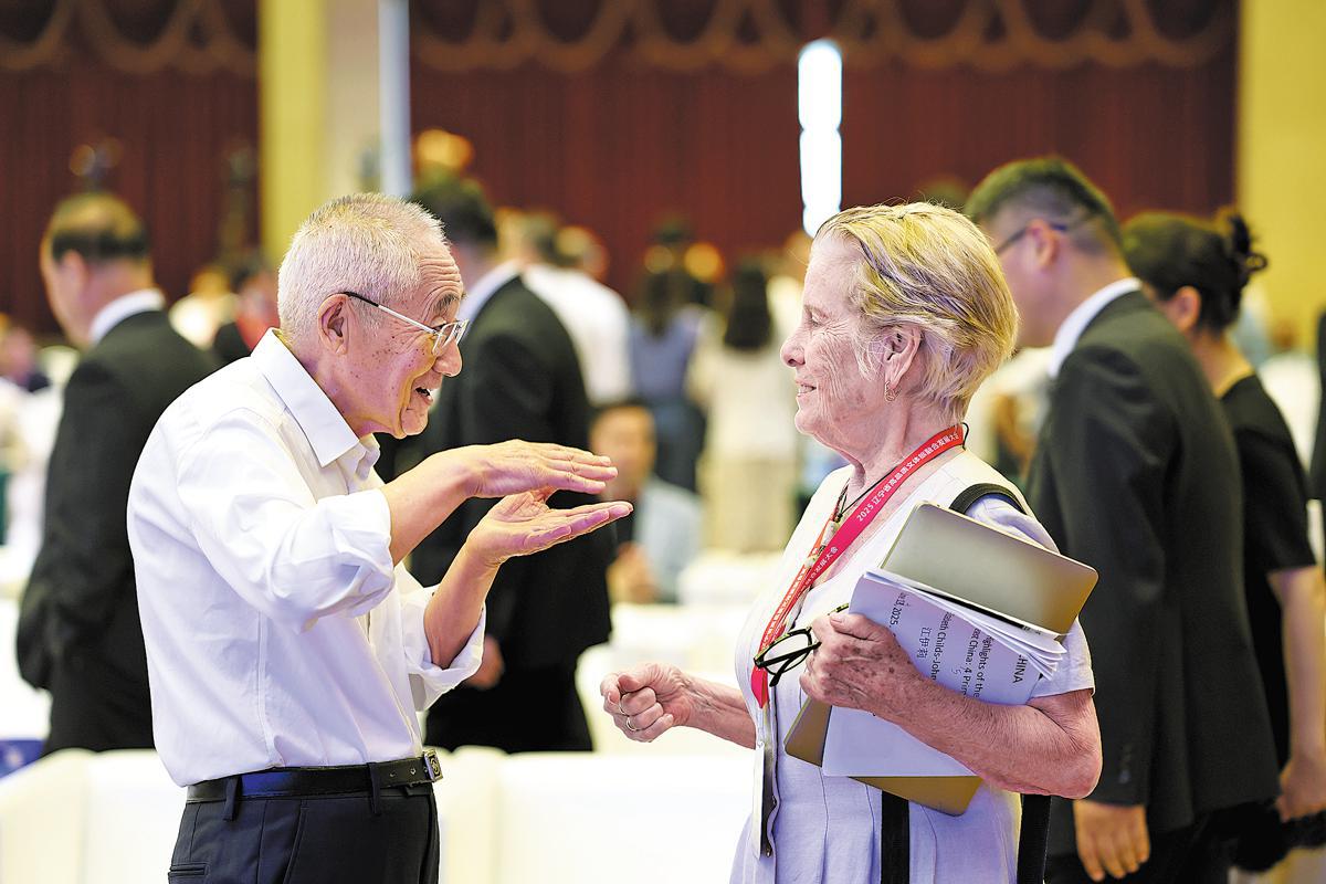 Guests interact at the International Communication Conference on Hongshan Culture and Vision China event on Saturday in Chaoyang, Liaoning province.WANG JING/CHINA DAILY
