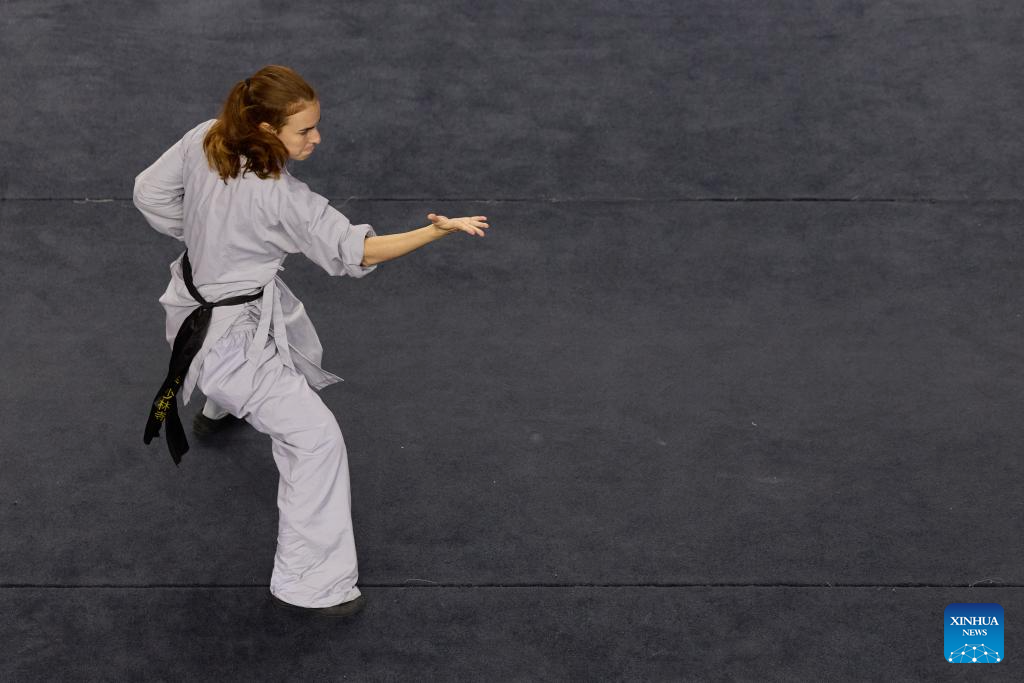 Athletes compete during the National Wushu Championships of Argentina in Buenos Aires, Argentina, on June 15, 2025. (Xinhua/Meng Dingbo)