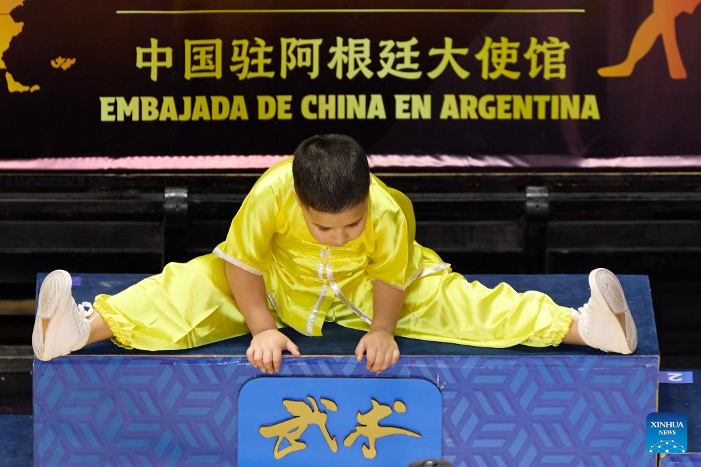 Young athletes perform during the National Wushu Championships of Argentina in Buenos Aires, Argentina, on June 15, 2025. (Xinhua/Meng Dingbo)