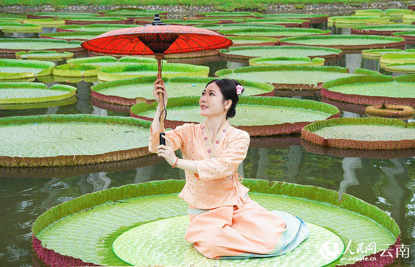 Recently the Victoria amazonica, also known as the giant water lily, at the Xishuangbanna Tropical Botanical Garden of the Chinese Academy of Sciences in southwest China's Yunnan Province, have entered their peak viewing period, drawing crowds of visitors. Tourists are lining up to get the unique experience of "sailing on a leaf" as they sit atop the massive floating leaves of the flower. Local women from the Dai ethnic group have been seen performing elegant dances on the leaves, adding to the charm.