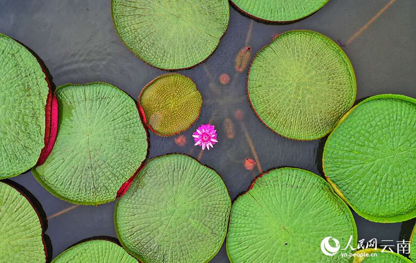 The giant water lily is a renowned aquatic ornamental plant. Its leaves can reach over 2 meters in diameter and are capable of supporting objects weighing up to 60 to 70 kilograms without sinking, making them a marvel of nature. Originally native to the tropical regions of South America, the species was first introduced to the Xishuangbanna Tropical Botanical Garden in 1963. After years of cultivation, it has become a signature attraction of the garden.