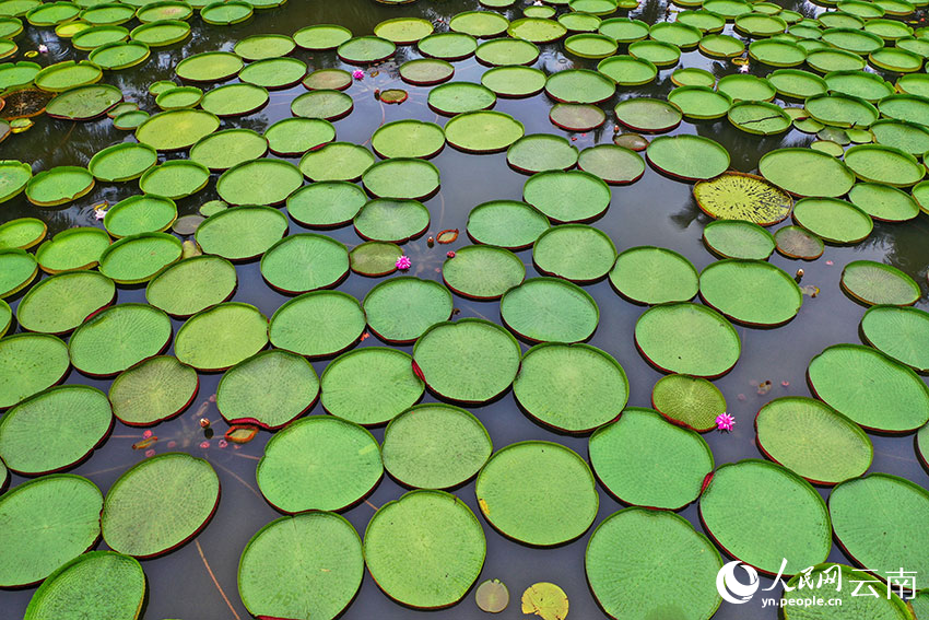 Photo shows Victoria amazonica in their peak viewing period in the Xishuangbanna Tropical Botanical Garden of the Chinese Academy of Sciences. (People's Daily Online/Zhang Jiaojiao)