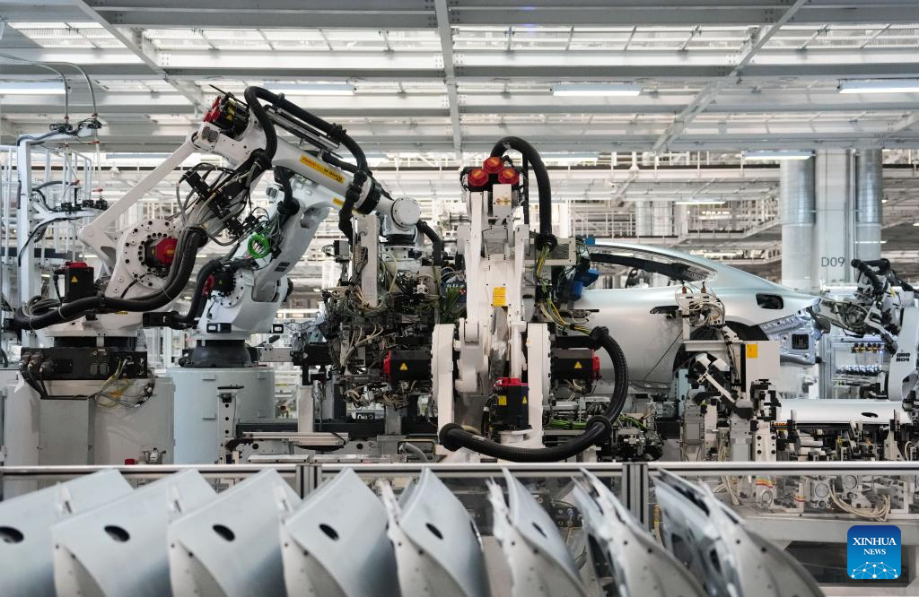 Robots work at Xiaomi's automobile factory in Beijing, capital of China, June 16, 2025. Located in the Beijing Economic-Technological Development Area, China's tech giant Xiaomi's automobile factory sprawls across over 700,000 square meters. Integrating research, testing, production and sales, the factory is open to the public to showcase its cutting-edge automotive production capabilities. (Xinhua/Zheng Huansong)