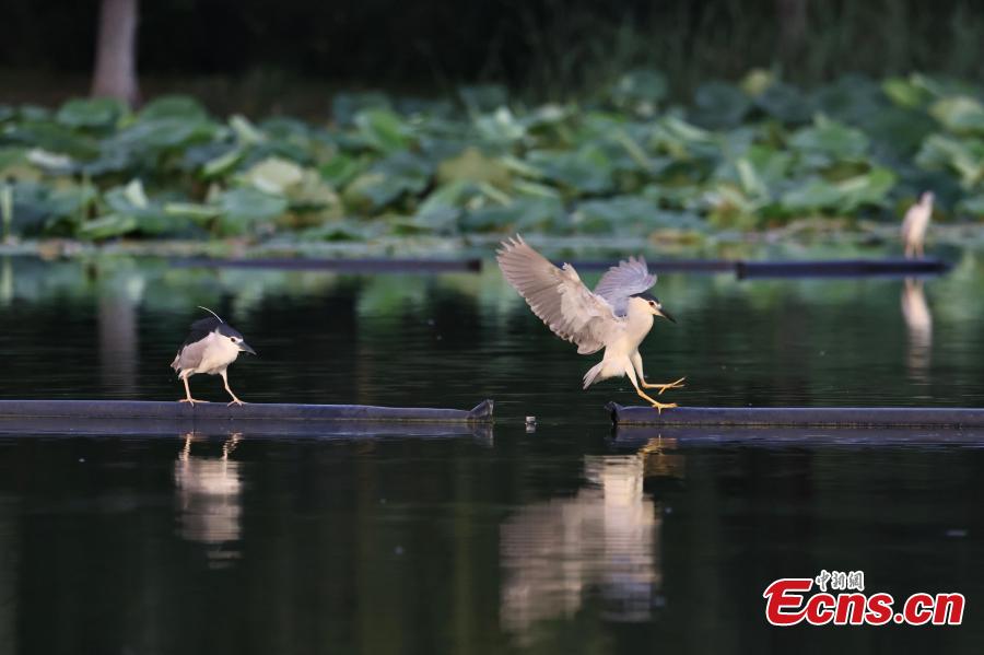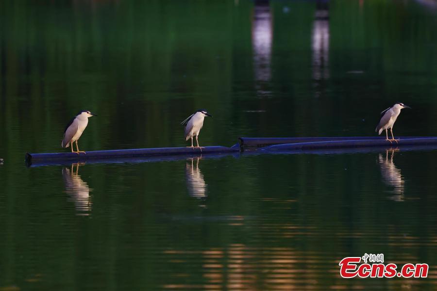 Birds rest on the lake at Beiyan Lake Park in Hefei, Anhui Province, June 15, 2025. (Photo: China News Service/Han Suyuan)