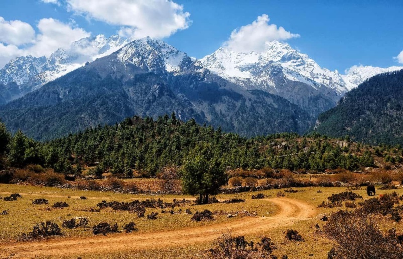 Snow-capped mountains and primitive forests in Gyirong form a picturesque view. (Photo by He Penglei)