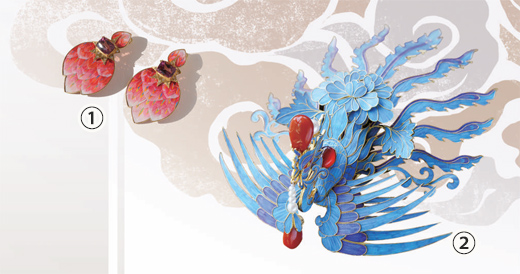 ②: Photo shows a phoenix hairpin adorned with parrot feathers and other materials. (Photo courtesy of Wang Shenglin)