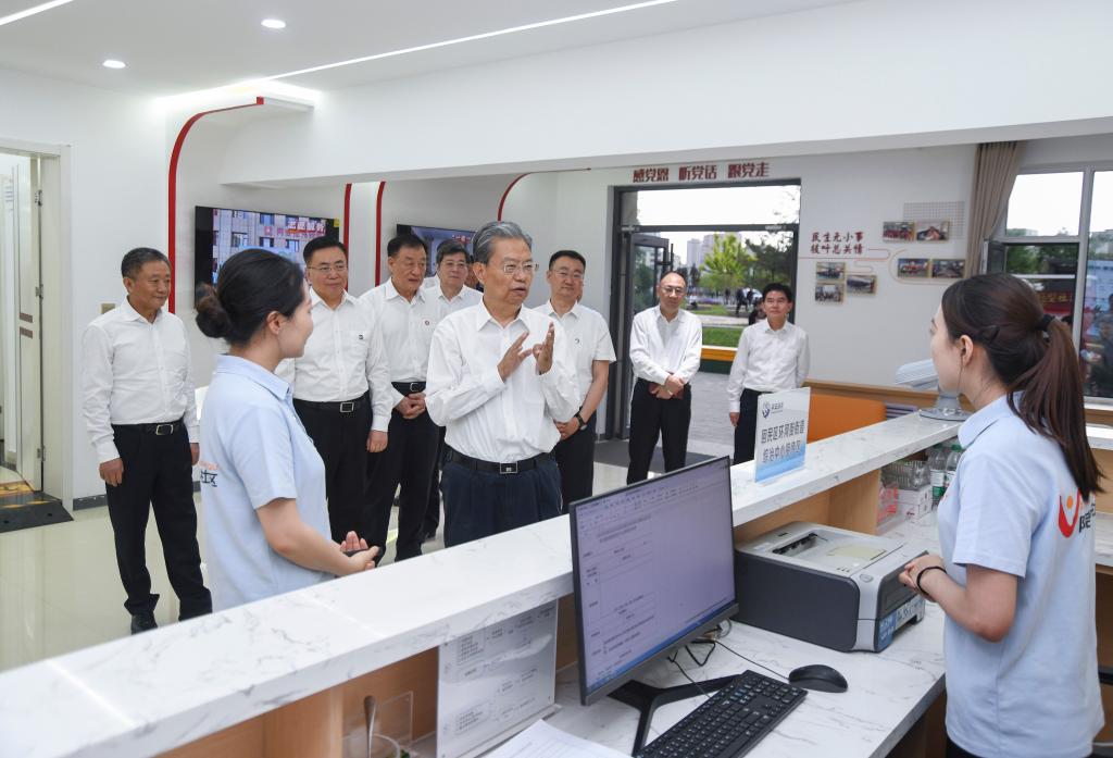 During the tour, Zhao visited communities and enterprises to speak with lawmakers and members of the public, and inspected the regional people's congress and the municipal people's congress in Arxan.