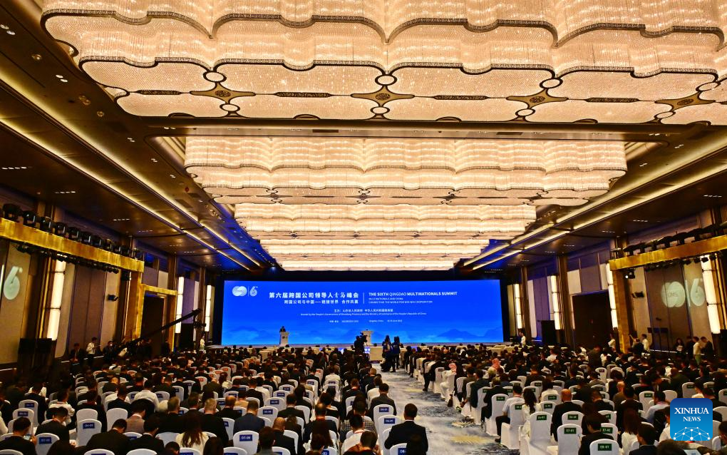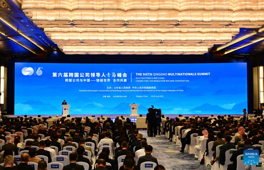 This photo taken on June 19, 2025 shows the scene of the sixth Qingdao Multinationals Summit in Qingdao, east China's Shandong Province. The opening ceremony of the sixth Qingdao Multinationals Summit was held in Qingdao on Thursday.