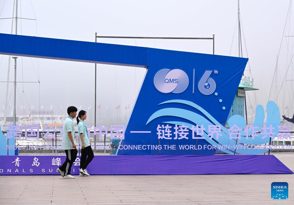 People visit the outdoor exhibition venue of the sixth Qingdao Multinationals Summit in Qingdao, east China's Shandong Province, on June 19, 2025. The opening ceremony of the sixth Qingdao Multinationals Summit was held in Qingdao on Thursday.