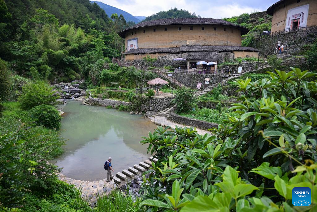 A tourist visits the Chuxi Tulou Cluster in Longyan, southeast China's Fujian Province, May 22, 2025. Fujian Tulou, the unique residential architecture of Fujian Province constructed between the 15th and 20th centuries, was inscribed on the UNESCO's World Heritage List in 2008.