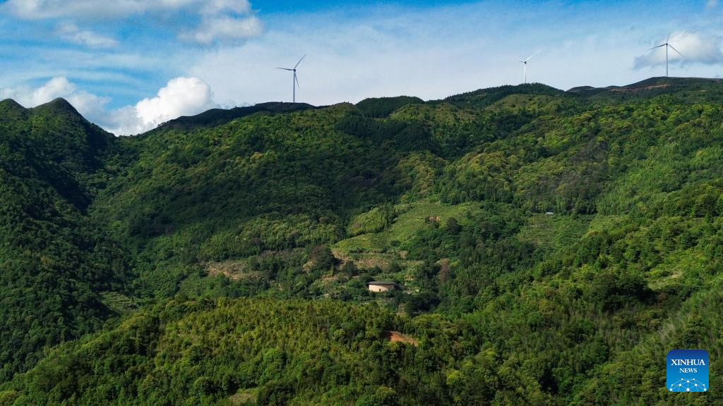 An aerial drone photo taken on May 21, 2025 shows a Tulou among mountains in Longyan, southeast China's Fujian Province. Fujian Tulou, the unique residential architecture of Fujian Province constructed between the 15th and 20th centuries, was inscribed on the UNESCO's World Heritage List in 2008.