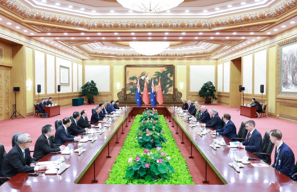 Chinese Premier Li Qiang holds talks with New Zealand's Prime Minister Christopher Luxon, who is on an official visit to China, at the Great Hall of the People in Beijing, capital of China, June 20, 2025 (Xinhua/Rao Aimin)