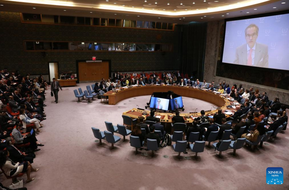 The UN Security Council holds an emergency meeting on threats to international peace and security at the UN headquarters in New York, on June 20, 2025. A Chinese envoy on Friday called for international efforts to promote talks to ease Israel-Iran tensions. (Xinhua/Xie E)