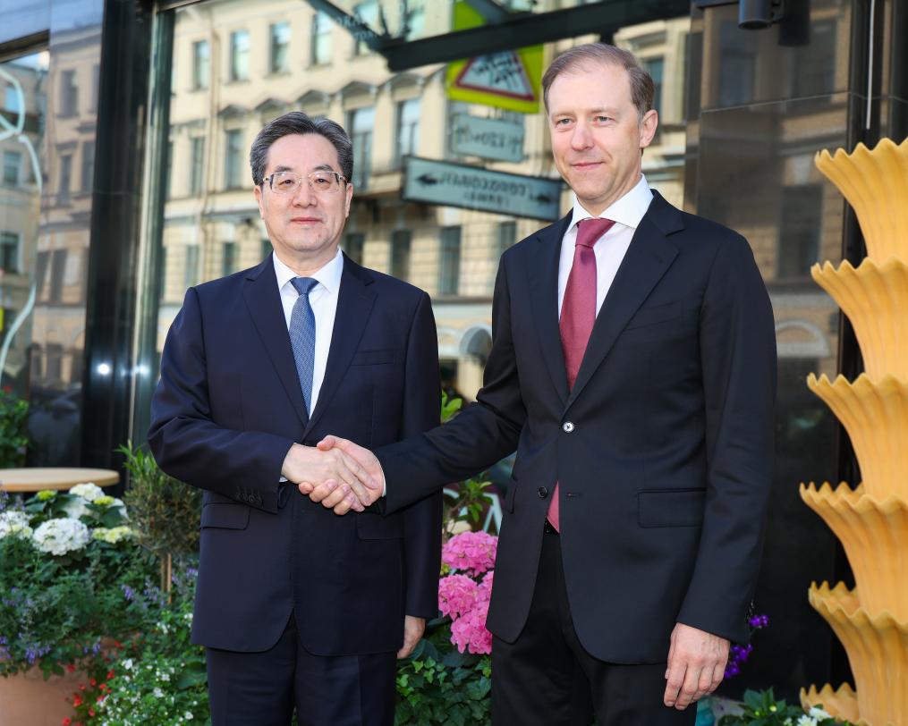 Ding, also a member of the Standing Committee of the Political Bureau of the Communist Party of China Central Committee, made the remarks when meeting with Russian First Deputy Prime Minister Denis Manturov on the sidelines of the 28th St. Petersburg International Economic Forum.