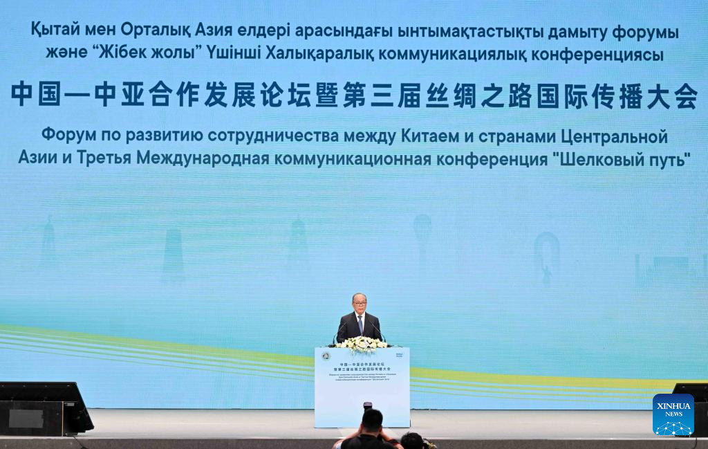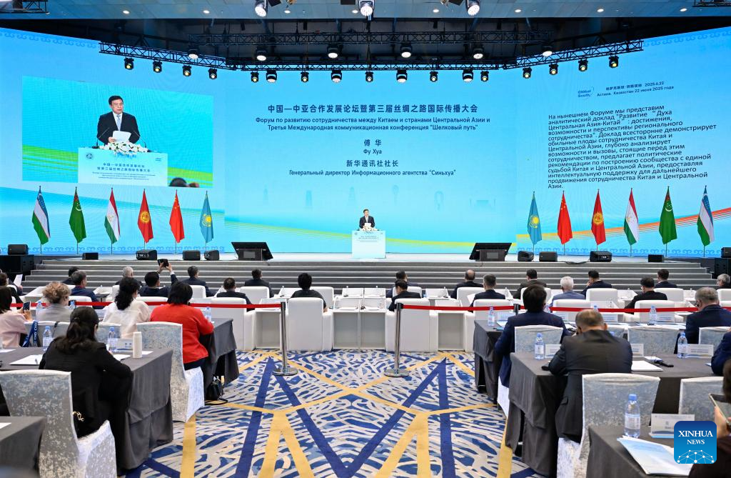 Fu Hua, president of Xinhua News Agency, attends the China-Central Asia Cooperation Development Forum and the Third Silk Road International Communication Forum in Astana, Kazakhstan, June 22, 2025. (Xinhua/Yin Bogu)