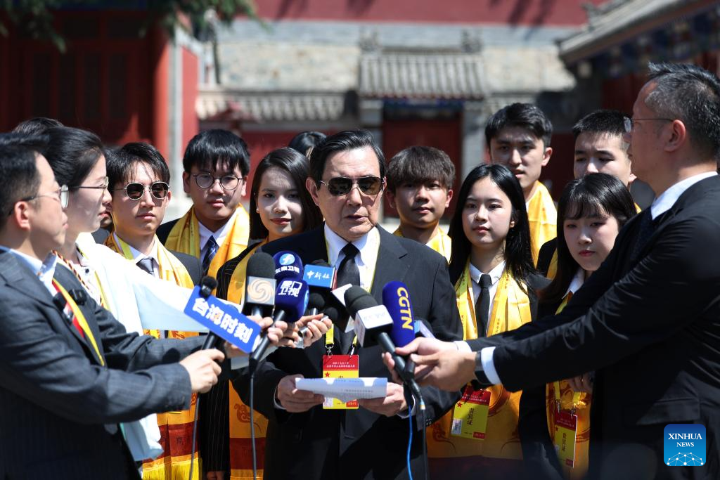 Ma Ying-jeou, former chairman of the Chinese Kuomintang (KMT) party, speaks at an interview after attending a ceremony worshiping Fuxi, a mythical ancestor of the Chinese nation, in Tianshui, northwest China's Gansu Province, June 21, 2025. A ceremony worshiping Fuxi, a mythical ancestor of the Chinese nation, was held on Saturday in the city of Tianshui.